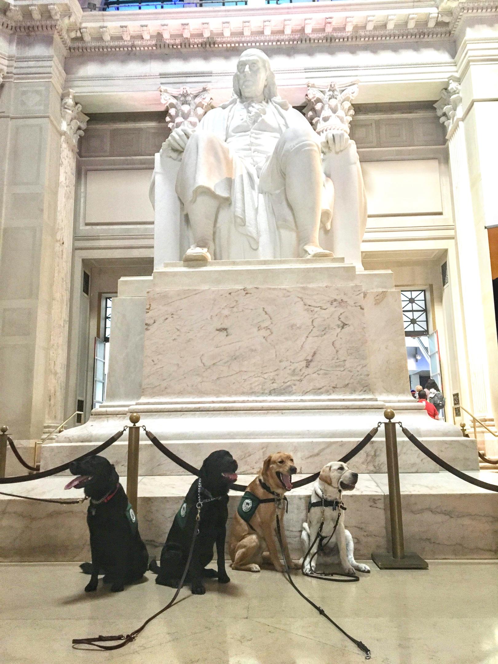 The Franklin Institute is one of our favorite places to bring our puppy. Firstly, the staff is always excited to see the puppy. Secondly, the museum offers so many different experiences for the dog’s sensory memory bank. Let me just name a few: people, stairs, noises, elevators, the Giant Heart, the Baldwin 60000 train, and all of us!