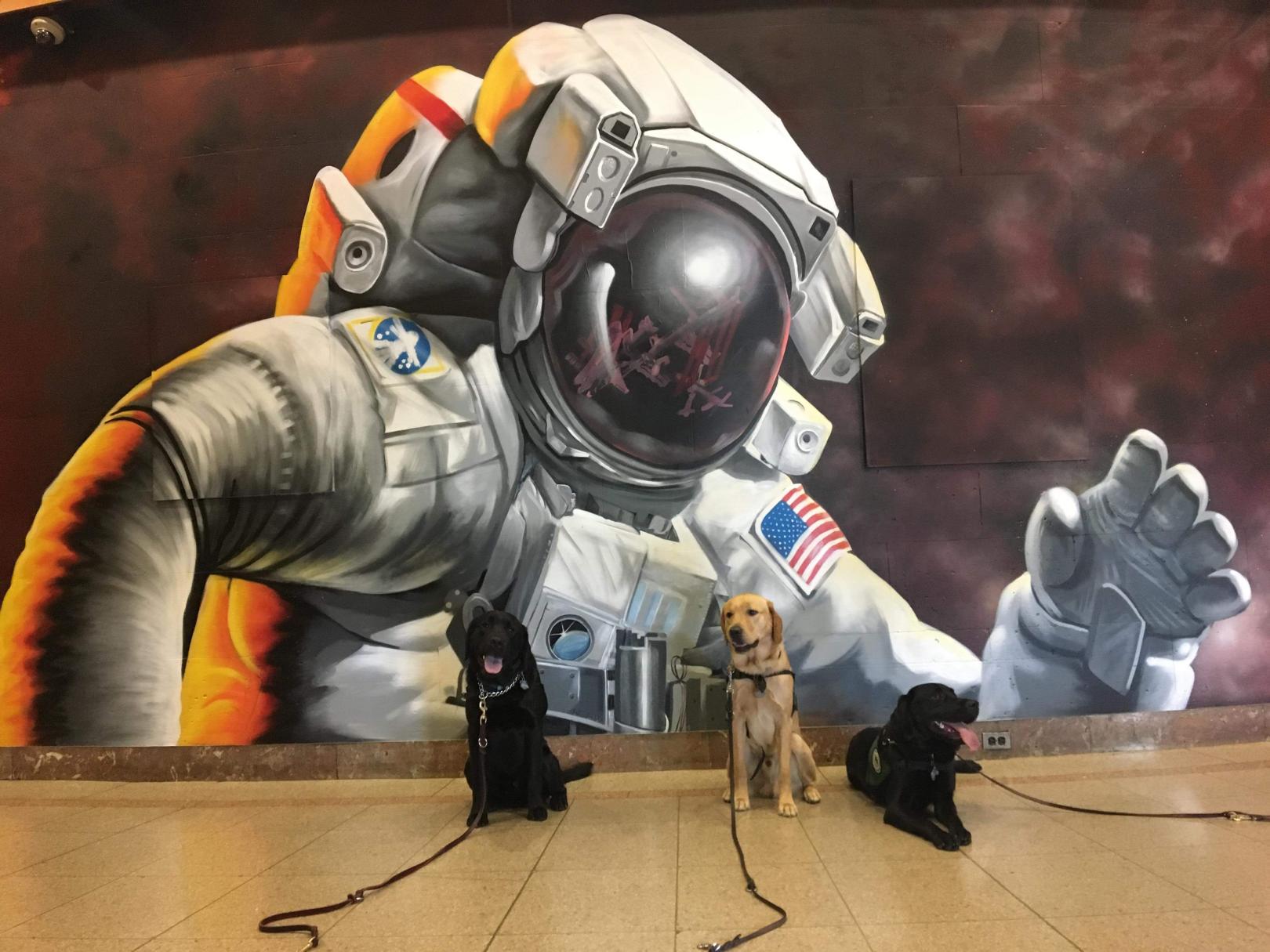 Something about service dogs that people need to remember: the dog is working, please observe them, but, let them work. People have a tendency to overwhelm the working dog. The dogs are trained to ignore distractions, but some people are insistent. The Seeing Eye® dog in particular is with a visually-impaired partner, so don’t come up and try and pet a guide dog in harness.