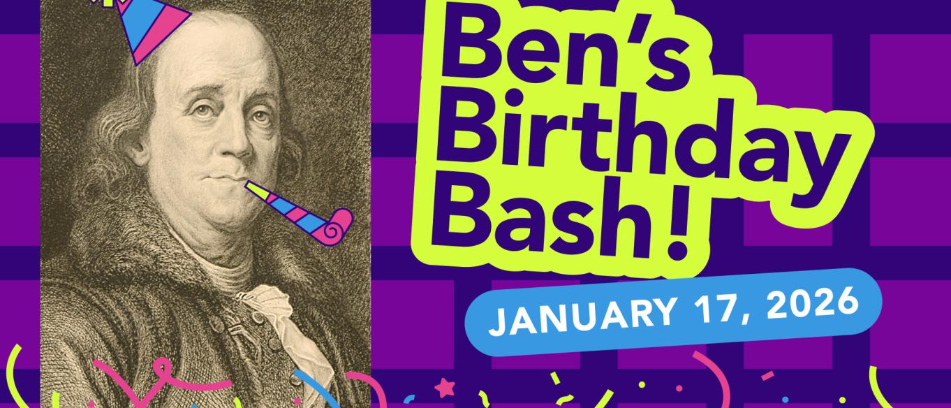 Join us in celebration of Philadelphia’s favorite founding father and our very own namesake on his 320th birthday. This lively birthday bash is packed with hands-on fun, games, and music, plus a few surprises! Snap a pic in front of the 20-foot-tall Benjamin Franklin National Memorial. Play Franklin-themed games, design birthday hats, see hair-raising electricity experiments, and hear the unique sound of “Happy Birthday” being played live on Franklin’s own invention, the glass armonica, with a celebratory ball-pit ball explosion finale! Franklin’s legacy will be on full, festive display during his birthday celebration, with programming, experiments, and activities designed to inspire ingenuity and showcase the innovative spirit in all of us. Come celebrate Ben the Franklin Institute way. Curious, creative, and electric!