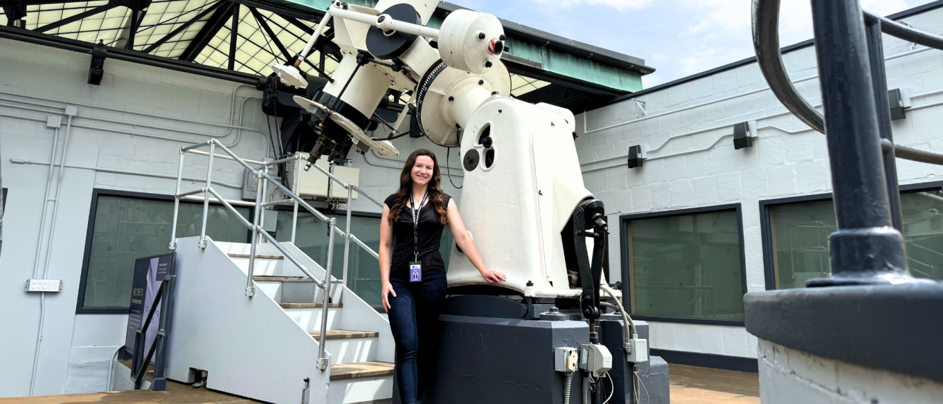 “One memorable interaction I’ve had with a visitor was outside of the observatory, in the second-floor Wondrous Space exhibit. While working on our black hole simulation interactive, one boy came up and started naming every feature, characteristic, and fact about black holes that you could possibly think of! He had just about as much black hole knowledge as I did… and he was 11! He was so passionate about space and science in general, and we had such a lovely conversation about all that is possible for him in his future. The moment became even more memorable when he told me his name was Franklin!”